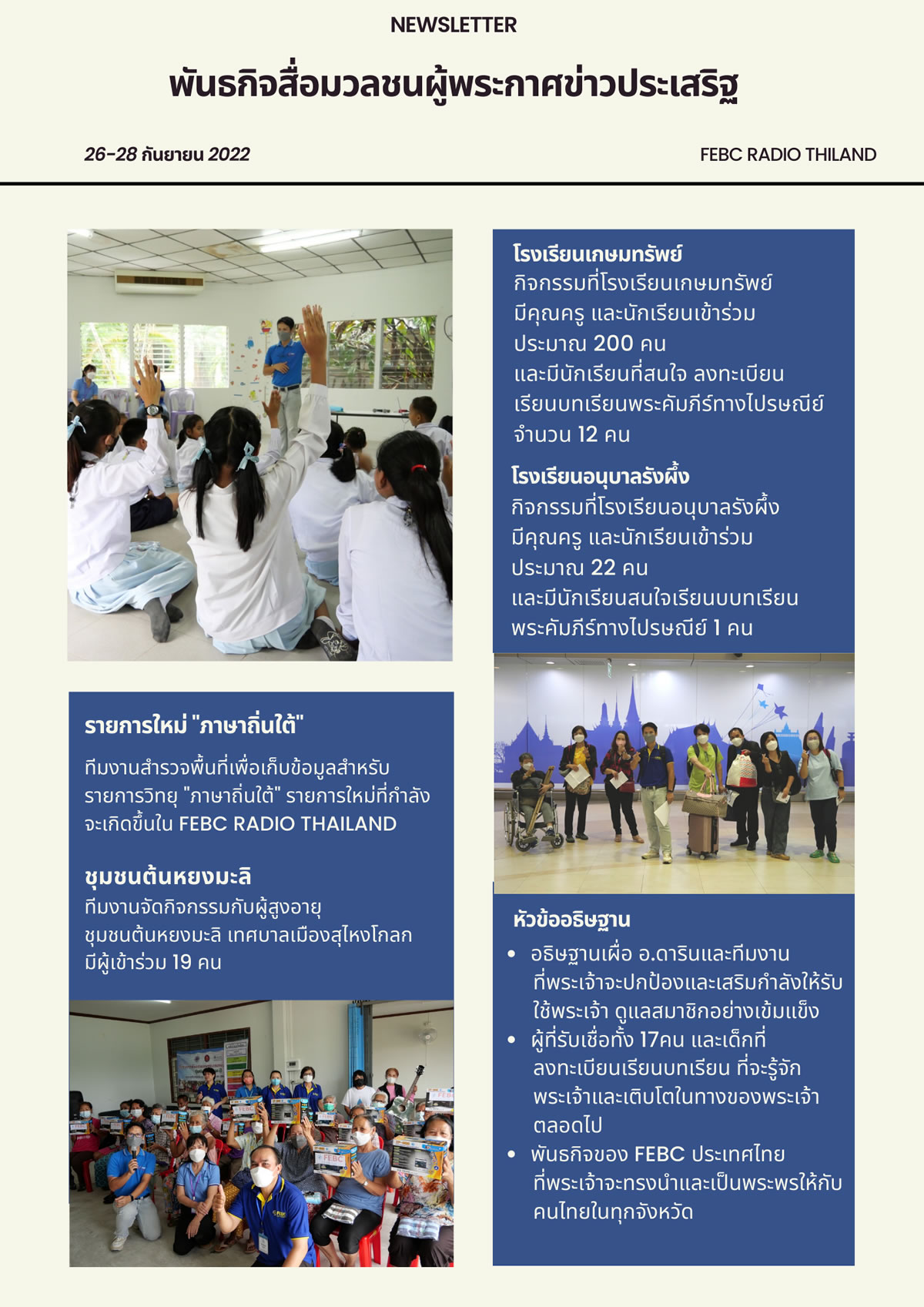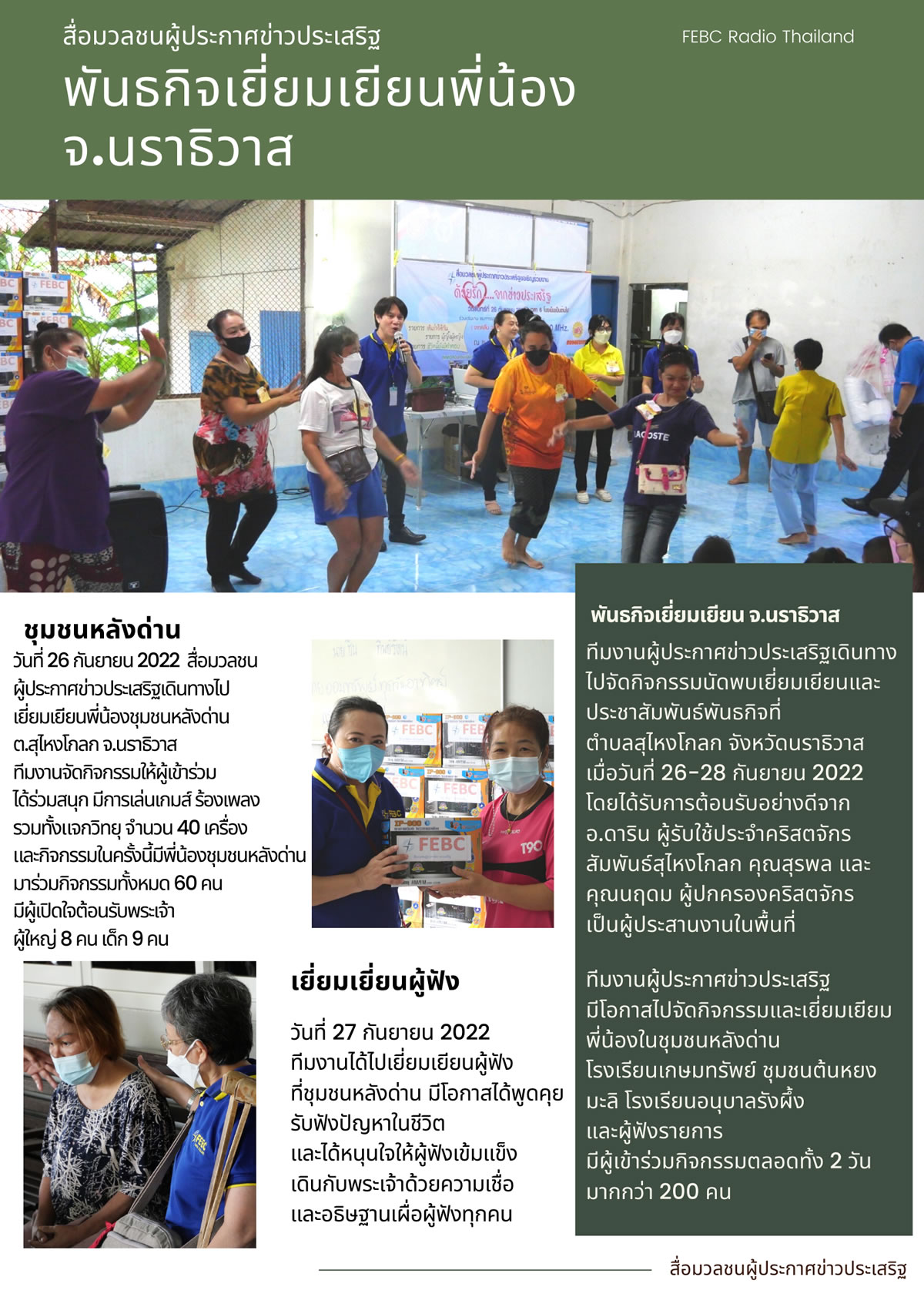 พันธกิจการเยี่ยมเยียนพี่น้องในจังหวัดนราธิวาส วันที่ 26-28 กันยายน 2022 โดยทีมงานผู้ประกาศข่าวประเสริฐ