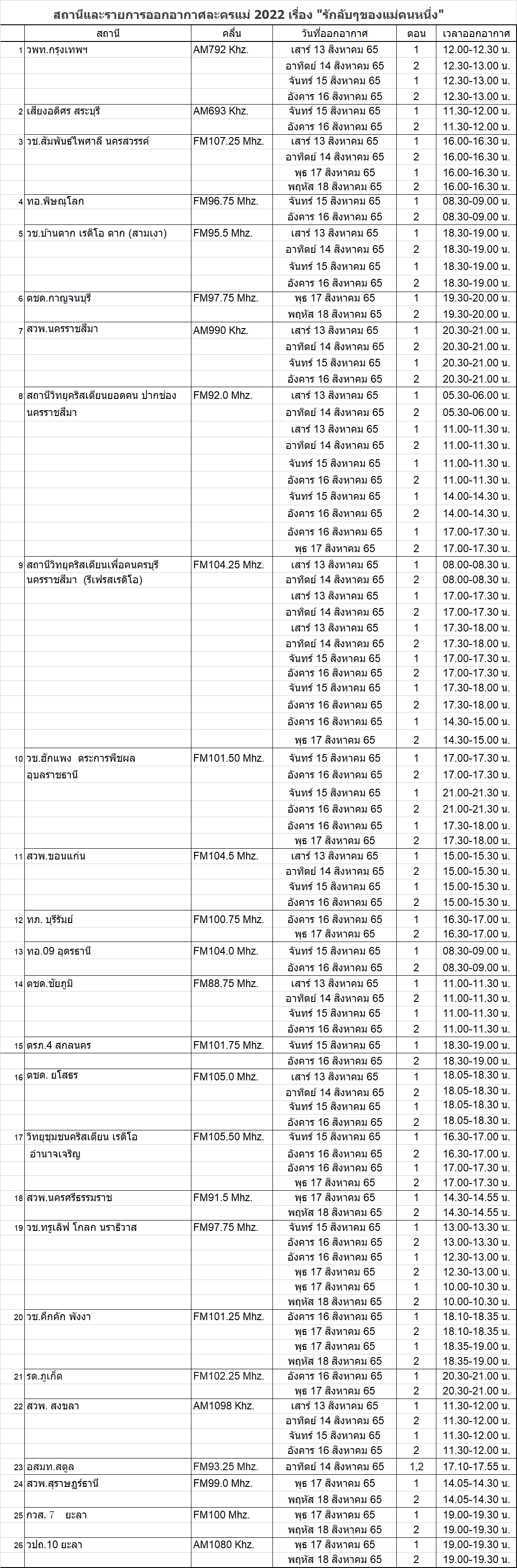 เชิญผู้ฟัง รับฟังละครวิทยุวันแม่ ปี 2022 ในเรื่อง “รักลับๆ ของแม่คนหนึ่ง” ผ่านทางสถานีวิทยุที่ท่านรับฟังเป็นประจำ ทางเว็บไซต์ และทางแอพพลิเคชั่น อย่าลืมร่วมกิจกรรมในละคร