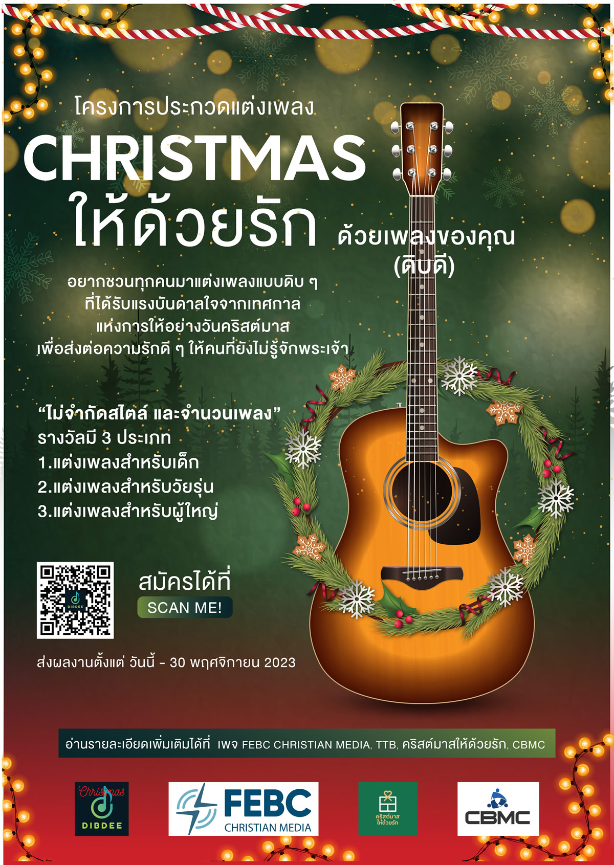 อยากชวนทุกคน ส่งผลงาน เพลงแบบดิบ ๆ ที่ได้รับแรงบันดาลใจจากเทศกาลแห่งการให้อย่างวันคริสต์มาส เพื่อส่งต่อความรักดี ๆ ให้คนที่ยังไม่รู้จักพระเจ้า